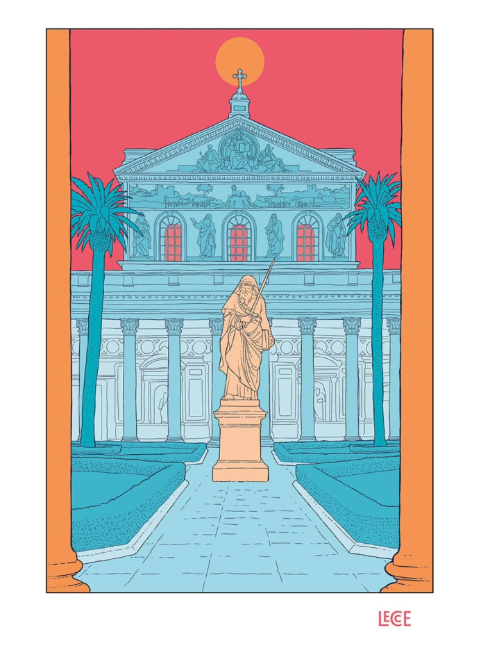 EMILIO LECCE, STAMPA FIRMATA 29,7x42 cm: San Paolo Fuori le Mura